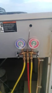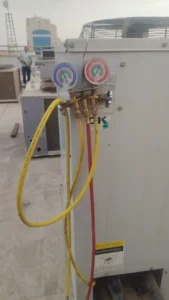 فحص وضبط غاز الفريون وضغط التشغيل.