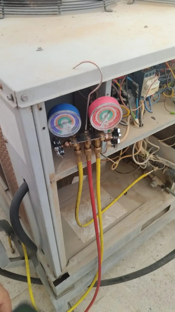 فحص وضبط غاز الفريون وضغط التشغيل.